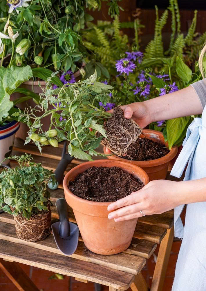 Hầu hết người làm vườn tại nhà đều trồng hoa trong chậu cũng như trong vườn. Cây trồng trong chậu đòi hỏi một cách bón phân khác. Giá thể trồng có thể bao gồm đất, xơ dừa, rêu than bùn, đá trân châu và vermiculte. Những hỗn hợp này hỗ trợ rễ phát triển tố và chống nén chặt, tuy nhiên hỗn hợp giá thể này chứa rất ít hoặc không có chất dinh dưỡng. Vào thời điểm trồng, tốt nhất là nên bổ sung phân hữu cơ hoặc phân bón tan chậm có kiểm soát.